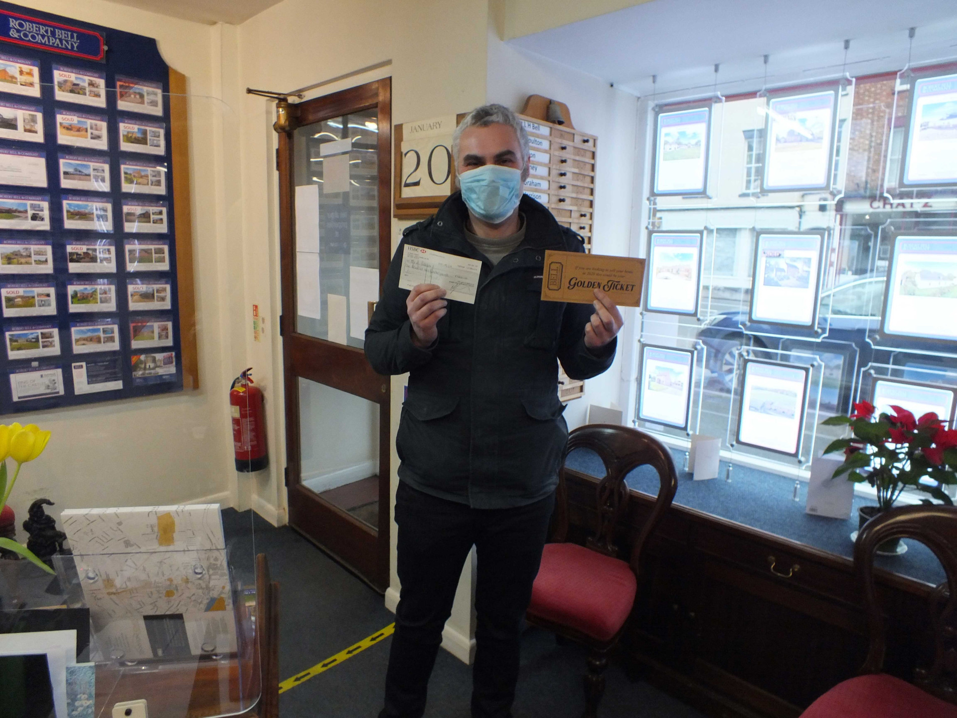 The competition was launched when golden tickets began falling through letterboxes around Horncastle, giving recipients the chance to win a refund on their commission if they instructed our office in the town to sell their home and completed by 23rd November 2020. Mr Catton did just that, and his ticket was pulled out in the New Year draw. Congratulations!