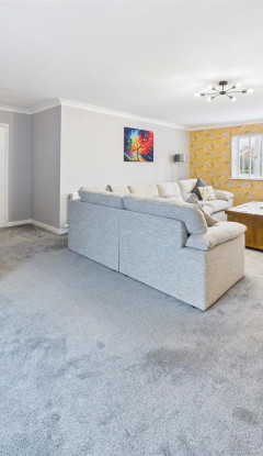 A stylish and spacious individually designed detached property, with three ground floor double bedrooms with planning to create a principal bedroom suite on the first floor. The property is of brick and block construction with a rendered exterior with stylish grey uPVC windows and doors and matching soffits and facias. Having a spacious family room with underfloor heating and large sliding double doors opening onto the paved patio under the overhanging eaves and leading out onto the large rear lawned garden.