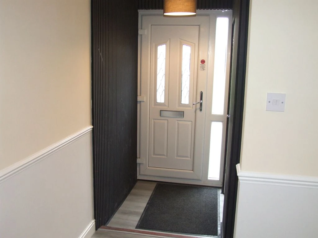 Landing, access to roof space, Three bedrooms (two double and one single), there are large built-in wardrobes in the main bedrooms and on the landing and the property has the benefit of new modern doors and wardrobe doors. Family Bathroom, with panel bath, walk in shower, low level WC, hand wash basin, towel rail and vanity unit.  Outside:-  Open garden to the front laid to slate, enclosed rear garden, store shed and boiler store. Allocated parking  Pets at Landlords discretion, no smokers, available unfurnished.  Viewing recommended to appreciate the quality the new fittings.