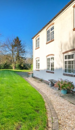 Gravelled and brick paved driveway spaces provide off-street parking, alongside a side car port; and enclosed rear garden.
