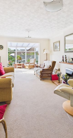 With a large lounge open to conservatory and spacious dining kitchen to the rear, the property provides two bedrooms and a bathroom; driveway and garage parking and gardens to the front and rear.