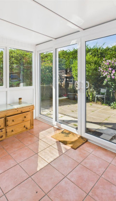 With a large lounge open to conservatory and spacious dining kitchen to the rear, the property provides two bedrooms and a bathroom; driveway and garage parking and gardens to the front and rear.